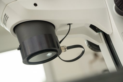 - Befestigung an der Frontoptik des Mikroskopkörpers oder am Vorsatzsystem (Einschränkungen bei Vorsatzoptik 1,5x und 2,0x)