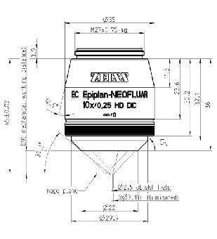 Modell: Objektiv EC Epiplan-Neofluar 10x/0,25 HD DIC M27 (a=9,0mm)